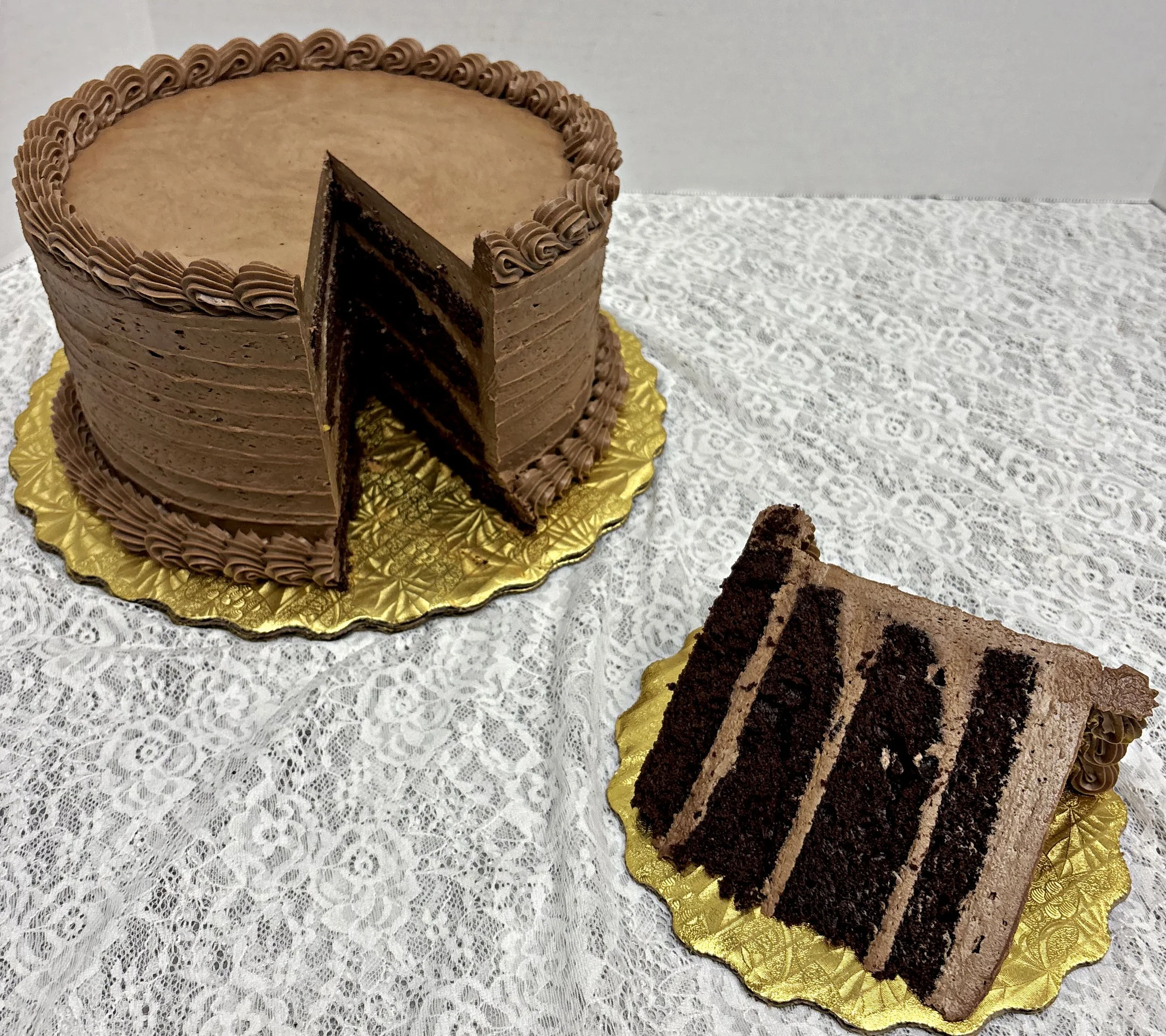 A rich, velvety chocolate cake layered and iced with our light, fluffy chocolate buttercream.