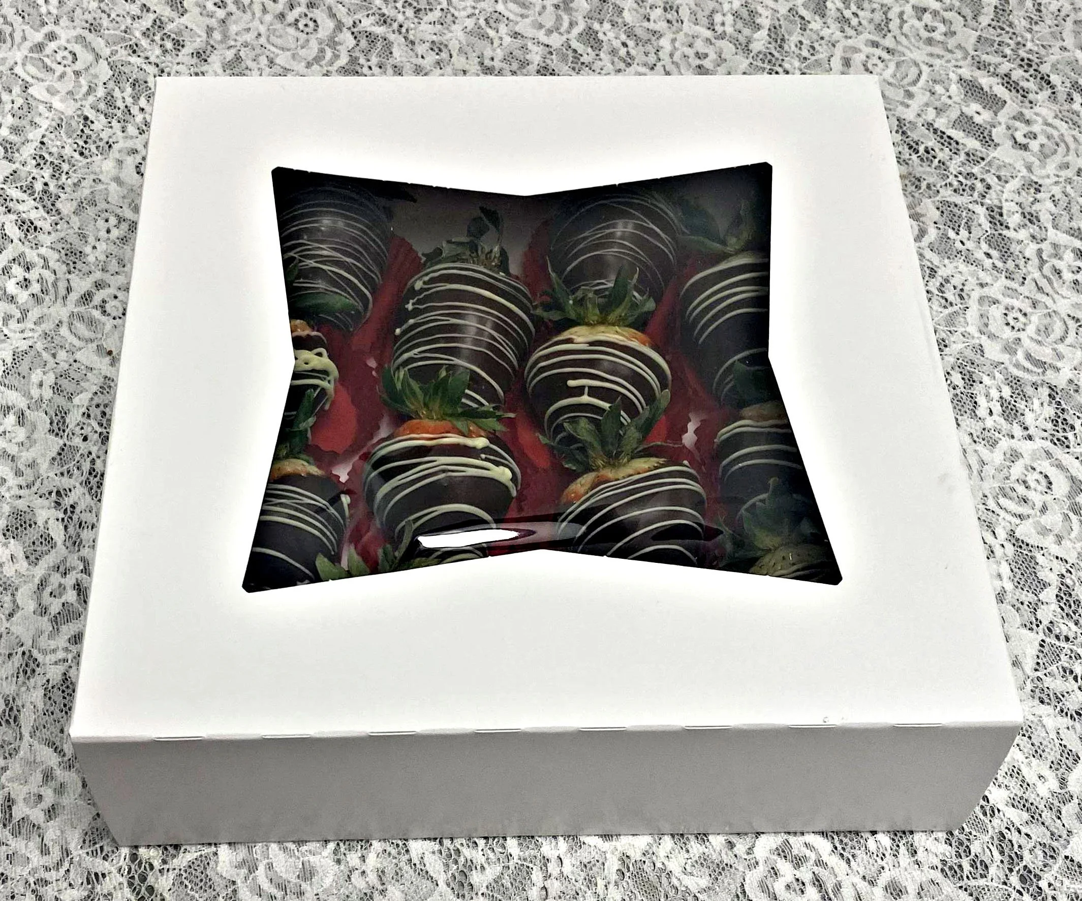 White Window Box with 12-14 Large Chocolate Covered Strawberries